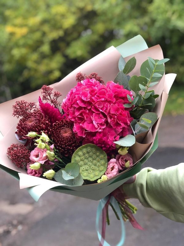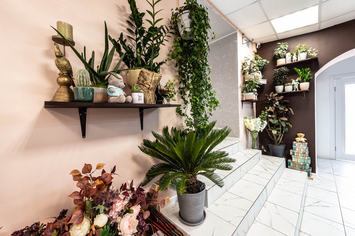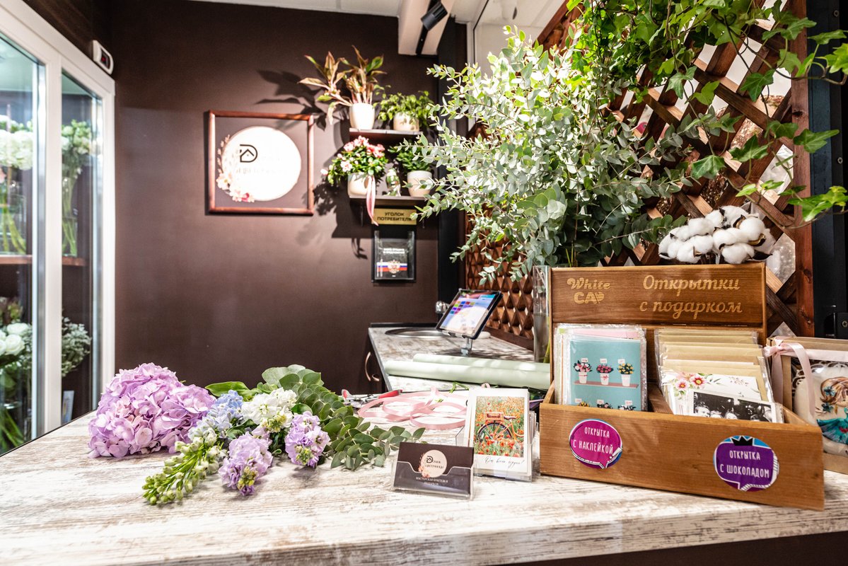В магазине вы найдете готовые решения к предстоящим праздникам, тематические букеты и композиции, а также флористы всегда с удовольствием предложат вам разнообразные варианты упаковки и гармоничные сочетания растений.